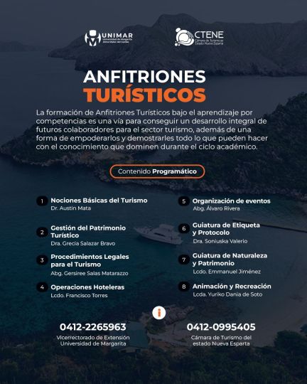 UNIMAR y la Cámara de Turismo del Estado Nueva Esparta (CTENE) se unen para presentarte la VI Cohorte del Diplomado: Anfitriones Turísticos.