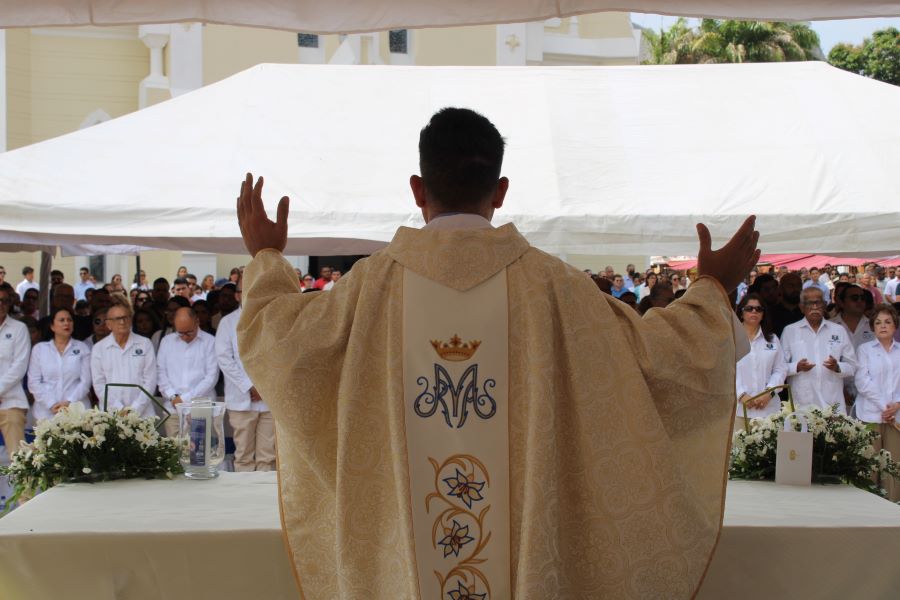 El pasado 17 de mayo, en las afueras de la Basílica Menor de Nuestra Señora del Valle, la Universidad de Margarita (Unimar) celebró la Misa de Acción de Gracias de la Promoción XLI Epónimo “25 Aniversario de la Universidad de Margarita”, oficiada por el Presbítero Andrés Villarroel Rivero en presencia de autoridades, docentes, personal administrativo, familiares y feligreses de la comunidad.