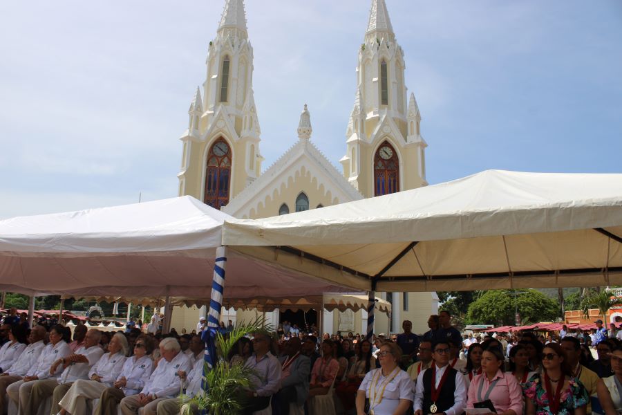 En el marco de la celebración de la Promoción XXXIX Profa. Raquel Pérez Henríquez, de la Universidad de Margarita, se realizó una Misa de Acción de Gracias el pasado 11 de mayo, en las afueras de la Basílica Menor de Nuestra Señora del Valle. Oficiada por el Padre Andrés Villarroel Rivero, contó con la presencia de autoridades, docentes, personal administrativo, familiares y feligreses de la comunidad de El Valle del Espíritu Santo.