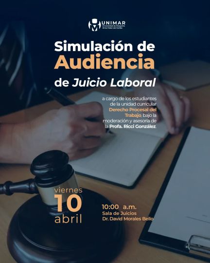 Desde el Decanato de Ciencias Jurídicas y Políticas, nos complace invitarles a presenciar la Simulación de Audiencia de Juicio Laboral, una actividad práctica donde el conocimiento académico se traslada al estrado.