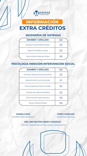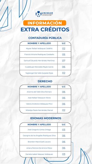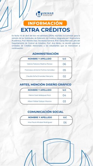 Unidades de Extra Créditos aprobadas del Trimestre abril-julio 2026